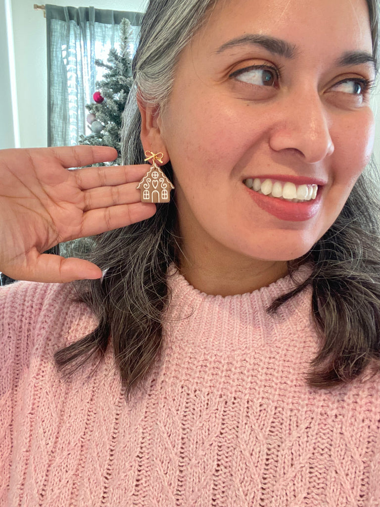 Gingerbread House with Bow Clay Earrings- Ready to Ship